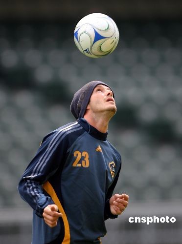 三月八日,英國足球巨星、現(xiàn)效力于美國洛杉磯銀河隊的貝克漢姆在香港大球場與球隊一起訓(xùn)練,備戰(zhàn)九日將舉行的表演賽。中新社發(fā) 武仲林 攝