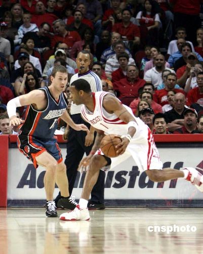 3月14日,休斯頓火箭隊(duì)在主場(chǎng)迎戰(zhàn)夏洛特山貓,盡管表現(xiàn)一般,但還是戰(zhàn)勝了弱旅山貓取得21連勝,創(chuàng)造了NBA歷史上的第二長(zhǎng)連勝紀(jì)錄。麥迪30分7個(gè)籃板,表現(xiàn)搶眼。中新社發(fā) 楊晉生 攝