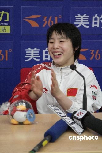 圖為在賽后新聞發(fā)布會上,汪皓稱自己的發(fā)揮在預(yù)想之內(nèi)。