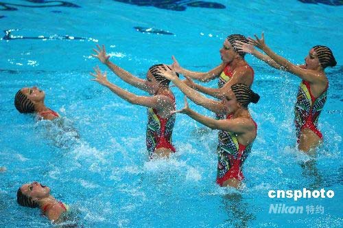 4月19日,“好運(yùn)北京”花樣游泳奧運(yùn)資格賽產(chǎn)生集體項(xiàng)目的金牌。西班隊(duì)以98.167分獲得冠軍,日本隊(duì)以96.501分獲得亞軍,加拿大名列第三,成績(jī)?yōu)?5.334分。根據(jù)國(guó)際泳聯(lián)規(guī)則,前三名獲得者獲得了最后三張奧運(yùn)集體項(xiàng)目的入場(chǎng)券,每支代表隊(duì)也附帶獲得了一個(gè)雙人項(xiàng)目參賽資格。 圖為西班牙隊(duì)在比賽中。作者: 富田