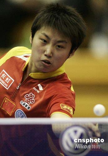 5月17日,在長春舉行的中國乒乓球公開賽女子團體決賽中,中國隊以3比0的總比分戰勝韓國隊,獲得冠軍。圖為郭躍在比賽中以3比2戰勝韓國DANG YE SEO。中新社發 杜洋 攝
