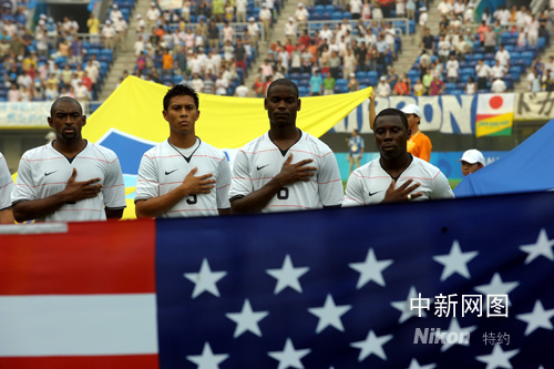 8月7日下午,奧運男足小組賽在天津“水滴”體育場拉開戰幕,日本迎戰美國隊。中新社記者 陳文 攝