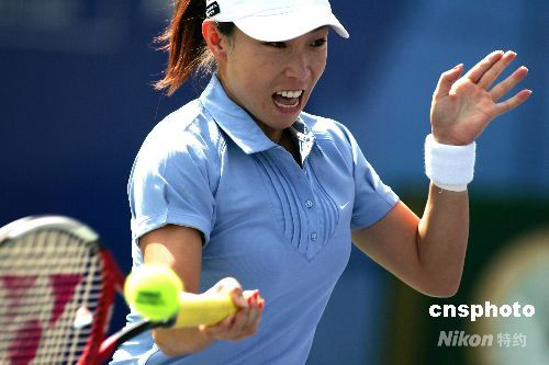 9月25日,2008年中國網球公開賽繼續進行,女單賽場碩果僅存的中國金花鄭潔僅用時69分鐘就以6-1,6-2橫掃日本老將杉山愛,昂首挺進女單8強。鄭潔很可能在4分之1決賽中與2號種子塞爾維亞美少女伊萬諾維奇狹路相逢。中新社發 富田 攝