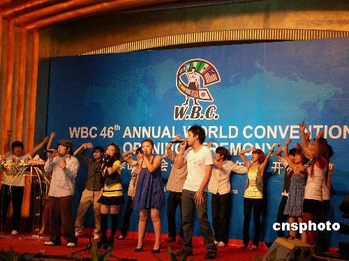 11月3日上午,2008世界拳擊理事會(WBC)第46屆年會在成都錦江賓館開幕,來自35個國家和地區(qū)的300多名拳擊界人士與會。年會除探討有關(guān)WBC的工作和未來規(guī)劃外,與會人士還將到都江堰地震災(zāi)區(qū)參加“向勇敢者致敬”的活動。中新社發(fā) 楊杰 攝