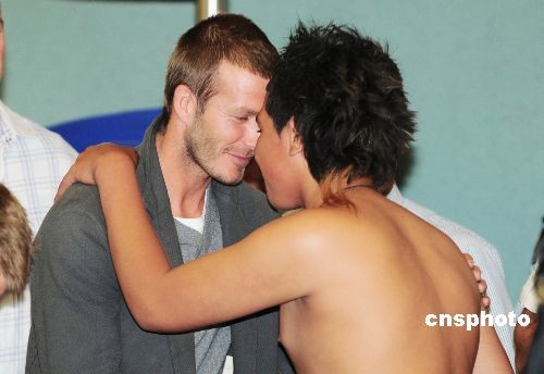2008年12月3日,世界著名球星貝克漢姆隨美國洛杉磯銀河隊駕臨奧克蘭國際機場,將與太平洋明星隊進行一場友誼賽。中新社發 胡旭君 攝