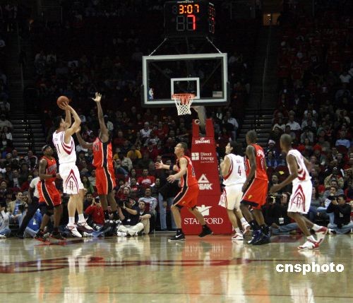 當地時間12月5日晚,姚明擔綱的休斯頓火箭以131比112戰勝金州勇士,姚明全場貢獻了賽季最高的33分,他還搶下了14個籃板,助攻5次。中新社發 歐文 攝