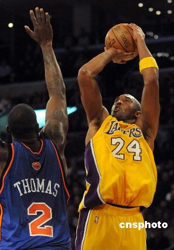 當地時間12月16日晚,NBA洛杉磯湖人隊主場迎戰紐約尼克斯隊,結果上演驚險大逆轉,以116比114險勝對手。其中湖人科比·布萊恩特一人拿下28分。中新社發 張煒 攝