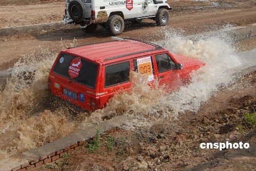 2009年4月29日,“景陽(yáng)春杯”越野車王爭(zhēng)霸賽在發(fā)動(dòng)機(jī)的咆哮聲中拉開(kāi)帷幕。本次大賽的最大魅力在于極強(qiáng)的觀賞性和參與性,賽手需要通過(guò)越野賽道內(nèi)36組障礙,尤其需要突破場(chǎng)地內(nèi)極具粘性的泥地,是通常項(xiàng)目無(wú)法比擬的!熬瓣(yáng)春杯”越野車王爭(zhēng)霸賽,以宣傳賽事以及山東文化產(chǎn)業(yè)及旅游產(chǎn)業(yè)的繁榮景象為主題,全方位展示汽車文化的獨(dú)有魅力及無(wú)限的發(fā)展空間!熬瓣(yáng)春杯”越野車王爭(zhēng)霸賽,系山東省體育總局主辦, 安丘市人民政府、山東青云國(guó)際旅游度假區(qū)股份有限公司承辦的跨度為五個(gè)月的大型賽事。中新社發(fā) 王曉光 攝