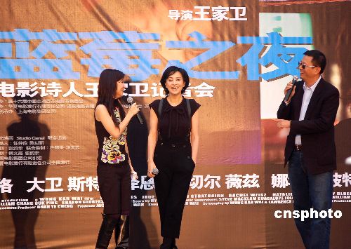 10月25日,第十六屆中國金雞白花電影節系列活動之“藍莓之夜——電影詩人王家衛導演記者會”在美麗的金雞湖畔舉行。香港著名導演、編劇及監制王家衛攜首部外語片《藍莓之夜》蒞臨現場,作為第十六屆金雞百花電影節娛樂形象大使的劉嘉玲也來為王家衛導演助陣,為本屆電影節增添璀璨星光。中新社發 邱勇 攝