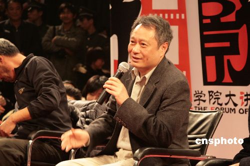 正在熱映的大片《色·戒》的導(dǎo)演李安12月25日做客北京電影學院,與同學們進行學術(shù)交流活動。同時出席的還有著名導(dǎo)演田壯壯及電影學院院長張會軍。李安還獲得了“北京電影學院客座教授”榮譽稱號。中新社發(fā) 墮天 攝