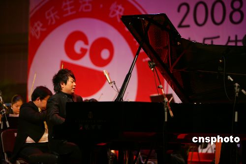 12月28日晚,青年鋼琴演奏家郎朗在長(zhǎng)沙舉行“快樂生活快樂購·郎朗乾坤2008新年感恩鋼琴音樂會(huì)”。上半場(chǎng)郎朗和湖南省交響樂團(tuán)合作表演了《黃河》,下半場(chǎng)獨(dú)奏時(shí)間里,郎朗演奏了莫扎特降B大調(diào)鋼琴奏鳴曲等世界名曲。中新社發(fā) 鄧霞 攝