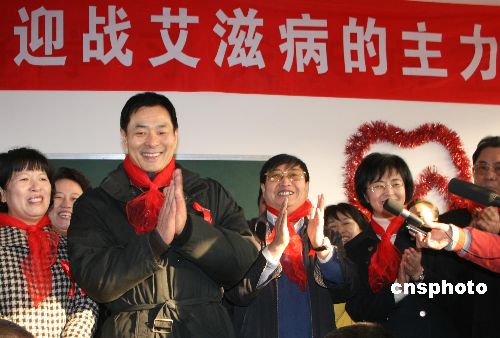 1月5日,著名演員、全國(guó)艾滋病宣傳員濮存昕看望了山西臨汾“綠色港灣”病區(qū)正在住院治療的艾滋病患者和“紅絲帶小學(xué)”的艾滋病兒童。為他們送去新年禮品,并與他們舉行了聯(lián)歡和聚餐活動(dòng)。中新社發(fā) 王輝耀 攝