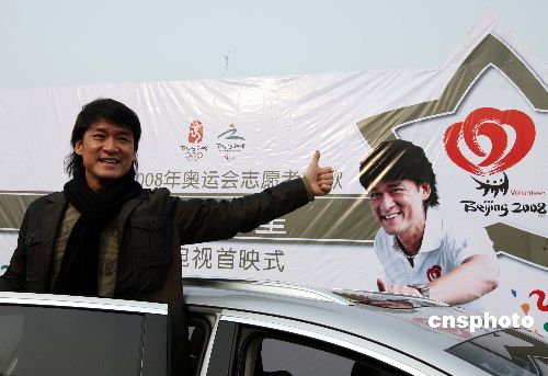 一月二十日,周華健在北京出席反映奧運志愿者的MV音樂電視《我是明星》首發。中新社發 任海霞 攝