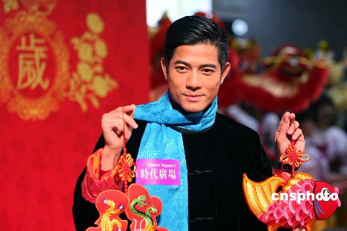 二月十一日,香港影視紅星郭富城出席時(shí)代廣場(chǎng)舉行的“金龍醒獅賀新歲”慶典,向商戶和顧客拜年。中新社發(fā) 洪少葵 攝
