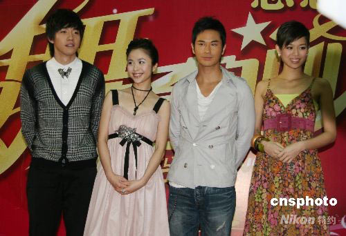 4月14日下午,由湖南衛視聯合香港TVB傾情打造的明星舞蹈競技類節目——《舞動奇跡》第二季在長沙盛裝啟航。圖為俞灝明、楊若兮、鄭嘉穎、胡杏兒(從左至右)在亮相儀式上登場。中新社發 鄧霞 攝