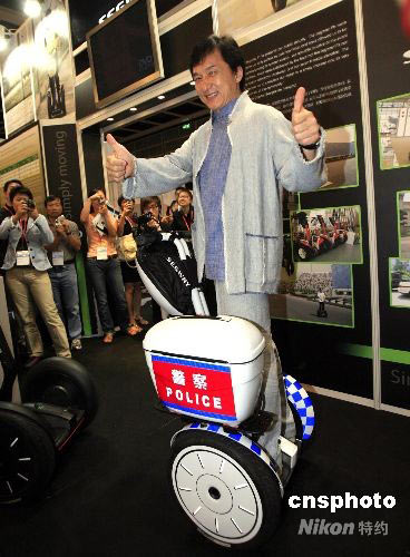 六月四日,成龍在香港會議展覽中心開幕的一個展覽會上,為外國一款先進的代步車代言宣傳。在現場眾多記者采訪他關于參與四川地震賑災情況時,成龍表示,未來設想成立一個藝員聯盟或協會,不分內地、香港、臺灣的地域,將演藝人員的愛心凝聚在一起,為地震災區重建或海外需要救助的人奉獻愛心。中新社發 王麗南 攝