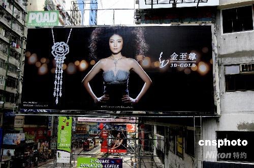 香港樂壇明星陳慧琳十八日晚在紅磡體育館舉行演唱會時突然宣布婚訊,嫁給與之相戀了十六年的男友劉建浩,并與歌迷約定,結婚后不會退休,待生了孩子后會再來紅館開演唱會。曾在美國修讀建筑的劉建浩,畢業后回港打理父親制衣生意,后自組公司。圖為香港街頭陳慧琳代言的巨大廣告。中新社發 王麗南 攝