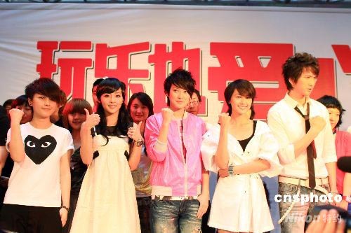 6月28日,某雜志攜手高圓圓、劉力揚(yáng)、厲娜、張嘉倪、格里杰夫在西直門嘉茂購(gòu)物中心進(jìn)行愛心義賣活動(dòng)。到場(chǎng)藝人捐出自己私人物品進(jìn)行愛心義賣為四川災(zāi)后的校園重建貢獻(xiàn)力量,義賣得到的全部善款將由工作人員親赴成都轉(zhuǎn)交給災(zāi)區(qū)人民。中新社發(fā) 王昊 攝