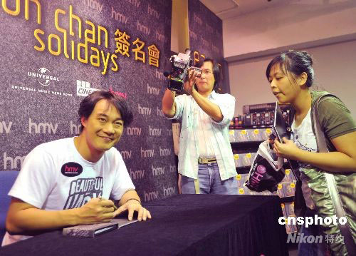 八月二十六日,香港歌星陳奕迅推出新碟《Solidays》,並舉行簽名會,與“粉絲”近距離接觸。中新社發 鄧慶樂 攝