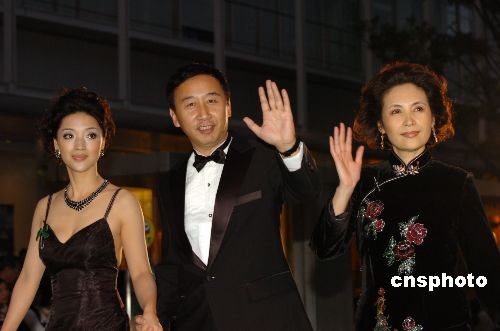 10月18日傍晚,第21屆東京國(guó)際電影節(jié)開幕。以“環(huán)保”為主題的本屆電影節(jié)別出心裁地將星光大道的地毯由紅色改為綠色。上個(gè)月剛剛當(dāng)選日本首相的麻生太郎與開幕影片《赤壁》劇組成員同走綠地毯,成為第一個(gè)光臨東京國(guó)際電影節(jié)現(xiàn)場(chǎng)的日本總理大臣。圖為參加本屆電影節(jié)競(jìng)賽單元角逐的中國(guó)著名導(dǎo)演馮小寧及電影《超強(qiáng)臺(tái)風(fēng)》主要演員。中新社發(fā) 朱沿華 攝