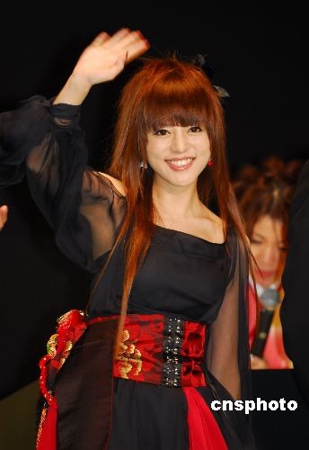 第21屆東京國際電影節10月18日在六本木新城盛大開幕。中國影片《赤壁》成為揭幕影片。圖為《赤壁》主題曲演唱者阿蘭向觀眾致意。中新社發 侯宇 攝