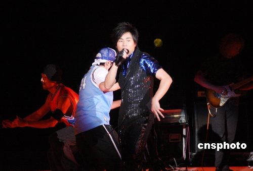 11月15日晚,大陸歌手胡彥斌在臺北舉辦2008《男人歌》個人演唱會。他成為大陸歌手在臺灣開演唱會的第一例。圖為胡彥斌臺北演唱會情形。中新社發(fā) 黃少華 攝
