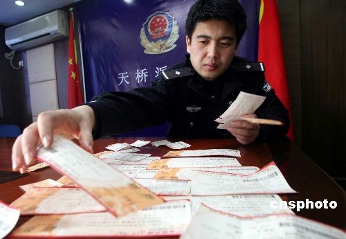 近日,北京宣武警方經過前期取證后對天橋劇場周邊的倒票團伙實施抓捕,5分鐘抓捕11名嫌疑人。目前,嫌疑人全部被宣武警方治安拘留。中新社發 湯亮 攝