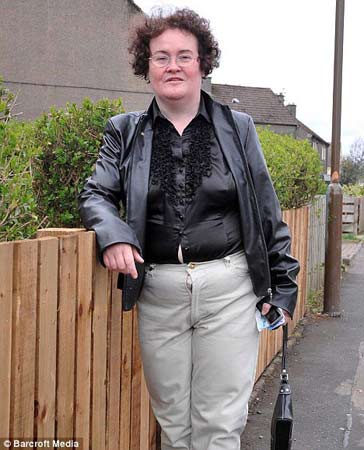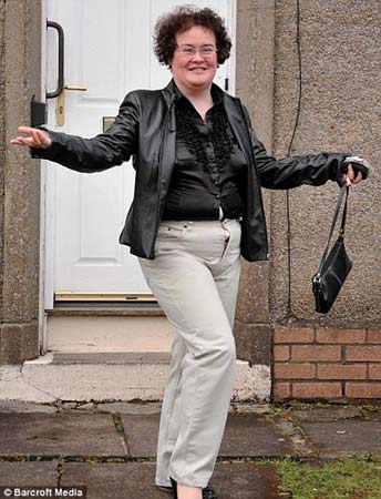 6日,經過一番打扮,蘇珊走出家門。面帶招牌式的笑容,蘇珊在自家門前大擺POSE,讓媒體記者拍個夠。開心的蘇珊并沒有注意到當時的形象并不得體——她忘記將褲子的拉鏈拉上。由于褲子太緊而拉鏈又沒拉,里面的衣服大有往外擠的陣勢。老式黑色襯衣緊緊地繃在她身上,更凸顯了她的贅肉。