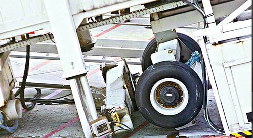 前幾年空中巨無霸A380來臺時,乘客進出還是透過這座空橋接登機門,專家質疑當時為了因應A380起降,航空站還修改登機門,如果當時有修改過這座空橋,是否造成結構受損;如未修改,“問題更大,表示當初進口就有問題!”