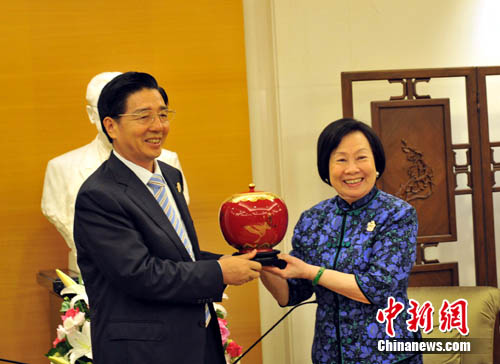 中新網(wǎng)臺北7月1日電 (記者 蔣雪林 黃少華)已故;鶗麻L辜振甫遺孀辜嚴(yán)倬云1日在會見到訪的廣西書記郭聲琨時說,兩岸簽署ECFA,將使兩岸的前途非常光明。