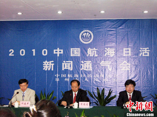 中新網(wǎng)泉州7月10日電(林永傳 郭斌)2010年中國(guó)航海日慶祝活動(dòng)將于11日在福建泉州精彩上演。10下午,組委會(huì)于此間舉行了新聞通氣會(huì)。
