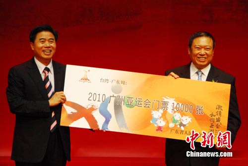 中新社臺北8月17日電 (記者 張傳熙)“臺灣•廣東周”開幕式17日上午在臺北國際會議中心舉行。臺灣政要及工商界知名人士,包括吳伯雄、江丙坤、王志綱、郭山輝等出席開幕儀式。廣東省省長黃華華在儀式上向臺灣有關方面贈送亞運會門票。