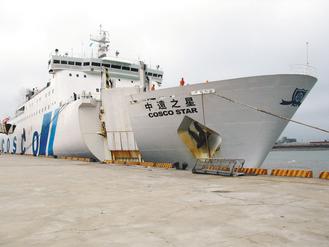 中國(guó)遠(yuǎn)洋所屬“中遠(yuǎn)之星”是第一艘獲準(zhǔn)兩岸直航定期航線的客貨兩用輪,去年9月6日首航,航線為“臺(tái)中─廈門”及“基隆─廈門”,每周往返各一航次。除載運(yùn)大陸游客赴臺(tái)旅游,貨運(yùn)則鎖定臺(tái)灣友達(dá)等面板大廠,將面板半成品運(yùn)回臺(tái)灣加工。
