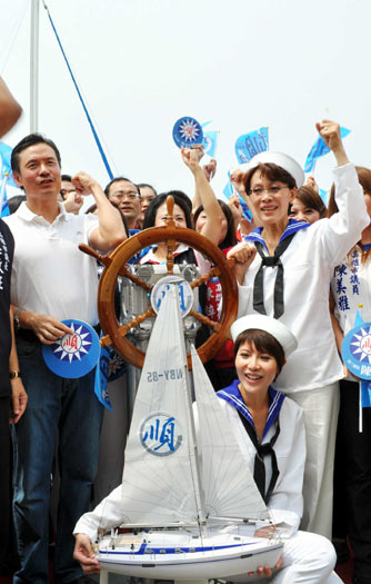 綜合臺灣“今日新聞網”報道,黃昭順與愛女、“正妹醫生”陳菁徽20日分著水手裝在高雄港香蕉碼頭舉行“CI發表”暨 “起灶大高雄都”啟動記者會, 公布競選LOGO。