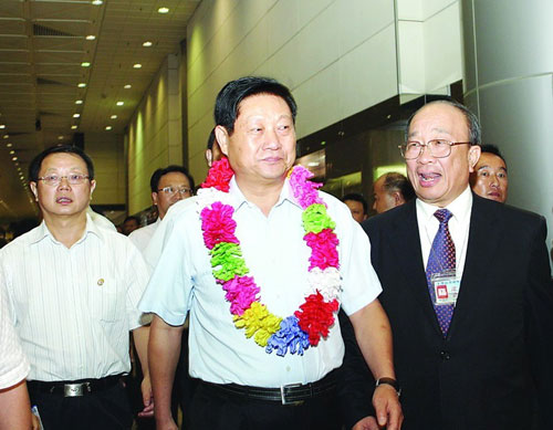 今晚(13日),隨著一架臺(tái)灣華航客機(jī)降落在臺(tái)北桃園機(jī)場(chǎng),以代省長(zhǎng)趙正永為團(tuán)長(zhǎng)、副省長(zhǎng)景俊海為副團(tuán)長(zhǎng)的陜西省代表團(tuán)抵達(dá)寶島臺(tái)灣,開始以“文化交流、認(rèn)親拜友、科技聯(lián)盟”為主題的“2010臺(tái)灣陜西周”活動(dòng)。臺(tái)北世界貿(mào)易中心秘書長(zhǎng)趙永生、臺(tái)灣陜西同鄉(xiāng)會(huì)會(huì)長(zhǎng)兼董事長(zhǎng)王廣生和西安臺(tái)資企業(yè)協(xié)會(huì)會(huì)長(zhǎng)孫芳山等率有關(guān)方面代表到機(jī)場(chǎng)迎接。
