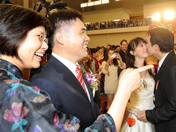 中新網10月11日電 據臺灣“今日新聞網”報道,臺北市政府10日下午舉行“花現臺北2010聯合婚禮”,臺北市長郝龍斌與夫人高閬仙現身為140對新人證婚,并祝福新人“幸福久久、十全十美、雙雙對對、萬年富貴”。