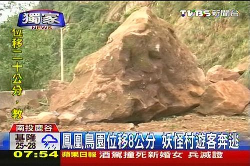往鹿谷里面走,投56線也出現坍方,巨石滾下來,在路面上砸出1條長長的裂痕,田底村13戶住戶,還有30多名采茶工人,還受困在村內,等待救援;觀光景點鳳凰谷鳥園,也因為地牛翻身,產生位移、樓梯下陷,地面高低落差將近8公分,園方也宣布暫時封園