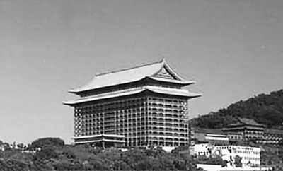 上個世紀50年代,臺北還沒有一家五星級飯店,蔣介石感到接待外賓尤其是外國政要很不方便,于是就想蓋一座“國賓館”。那么,飯店蓋在哪里好呢?宋美齡認為位于基隆河濱、圓山山腰的臺灣飯店就很好。因為傳說這是塊風水寶地,當年日本人就看中這里是所謂的“龍尾穴”,建起了神社。臺灣光復后,在神社的廢墟上蓋起了臺灣飯店,由本地的旅行社經營。雖然臺灣飯店只有36間客房、1間餐廳,建筑老舊,設備簡陋,但環境清幽,視野開闊,宋美齡很喜歡在這里接待外賓。地址選好了,那么選擇什么建筑式樣呢?幾經考慮,蔣介石最后選擇了中國宮殿式房舍和庭院,意圖憑借其莊重宏偉的外觀、典雅精致的陳設,向外賓宣揚中國的傳統文化。臺灣著名的建筑設計師楊卓成先生為此繪制了12張風格迥異的設計圖,蔣介石選了其中一張。可以說,圓山飯店從它建成的第一天起,就注定要成為人們關注的焦點。