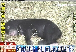 中新網5月26日電 臺灣高雄壽山動物園成功自然培育出第3只臺灣黑熊。小黑熊才出生約2個月,就成為搶手的對象。提供熊爸爸的臺北動物園希望小黑熊能早點回到臺北動物園。