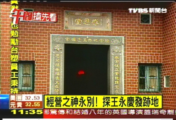 中新網10月16日電 臺灣“經營之神”王永慶今天去世。臺灣TVBS報道說,白手起家的他,當年就是從新店直潭發跡,祖厝“感恩堂”還保留著當年三合院的格局,盡管不是出身大戶人家,不過外頭有一道龍形圍墻,王永慶日后確實也像這龍一樣事業飛黃騰達。