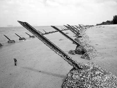 記者此次金門行,陳先生自己駕車帶我們參訪。他是金門人,熟悉金門的一草一木。沿著環島路前行,車窗外不時有碉堡工事掠過,田野山坡上的反空降樁,一行行,一排排,觸目驚心。