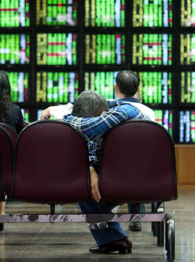 組圖:臺股大跌投資人望盤興嘆 甚有人索性睡覺