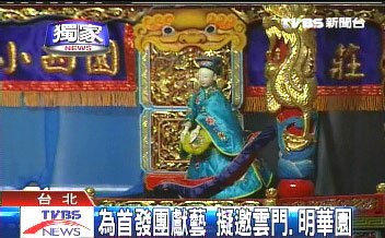 報(bào)道說,節(jié)目包括大家熟知的明華園,還有云門舞集,其它還包括朱宗慶的打擊樂團(tuán)以及小西園掌中戲等等,目前都在征詢檔期。