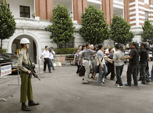 報道說,馬英九辦公室從六月九日再度開放參觀以來,以往參觀的都是零散的大陸觀光客,上午首度有來自廣州的觀光團前來參觀。