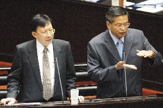 全球信用緊縮恐懼風暴擴大,臺“行政院長”劉兆玄(左)7日上午強力信心喊話,宣示所有島內銀行存款戶的存款,都由政府保障。(圖片來源:臺灣《聯合晚報》)