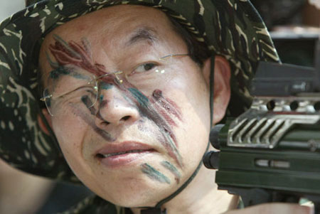 謝長廷“漏網鏡頭”:臉涂迷彩 大玩倒立(組圖)