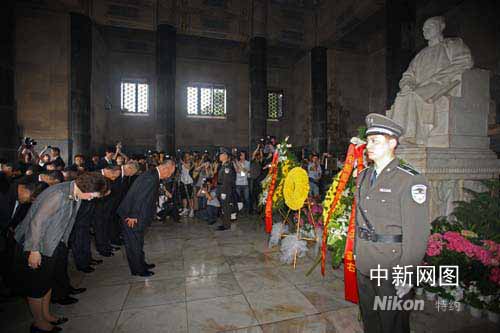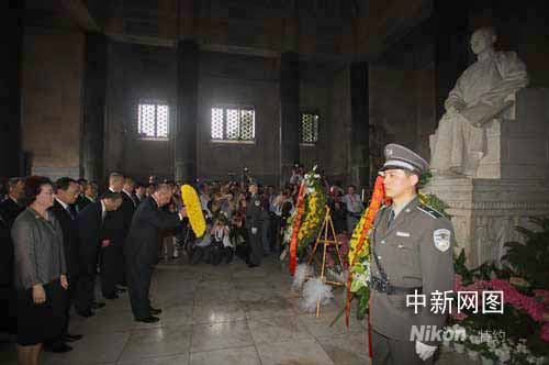 中新網5月27日電 中國國民黨主席吳伯雄率領中國國民黨訪問團今天(27日)上午8時20分左右抵達南京中山陵,隨后舉行拜謁儀式,向孫中山先生坐像敬獻花圈、宣讀祭文、行鞠躬禮。