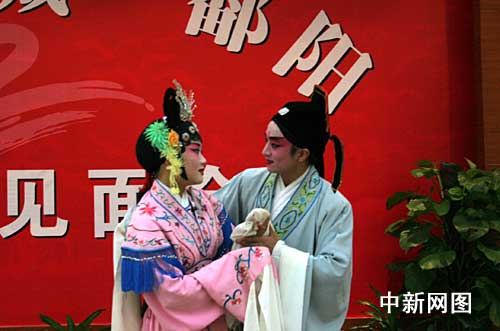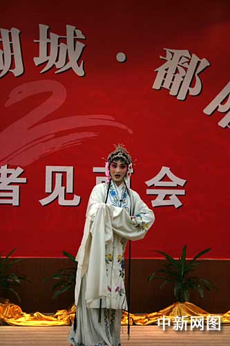 中新網(wǎng)10月22日電 “第五屆網(wǎng)絡媒體江西行”采訪團22日抵達鄱陽縣。縣委書記劉鋒等會見了記者并回答提問。見面會后,當?shù)匮輪T獻上了地方戲劇。