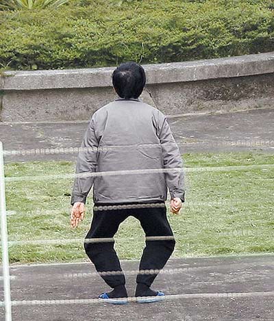 電視畫面顯示,陳水扁在放風(fēng)中,沿著看守所內(nèi)的小操場,進行慢跑,大約持續(xù)了20多分鐘左右;放風(fēng)時,也由幾名員警戒護,隨時注意周邊狀況,警察也手持望遠鏡,注意四周制高點的狀況。