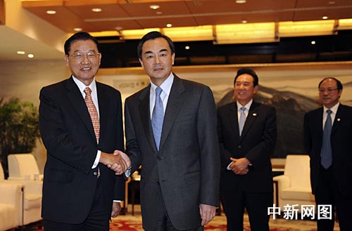 中新網(wǎng)南京4月26日電 (記者 劉舒凌)中共中央臺(tái)辦主任王毅今天下午5時(shí)許在南京會(huì)見海基會(huì)董事長江丙坤率領(lǐng)的協(xié)商代表團(tuán)一行。